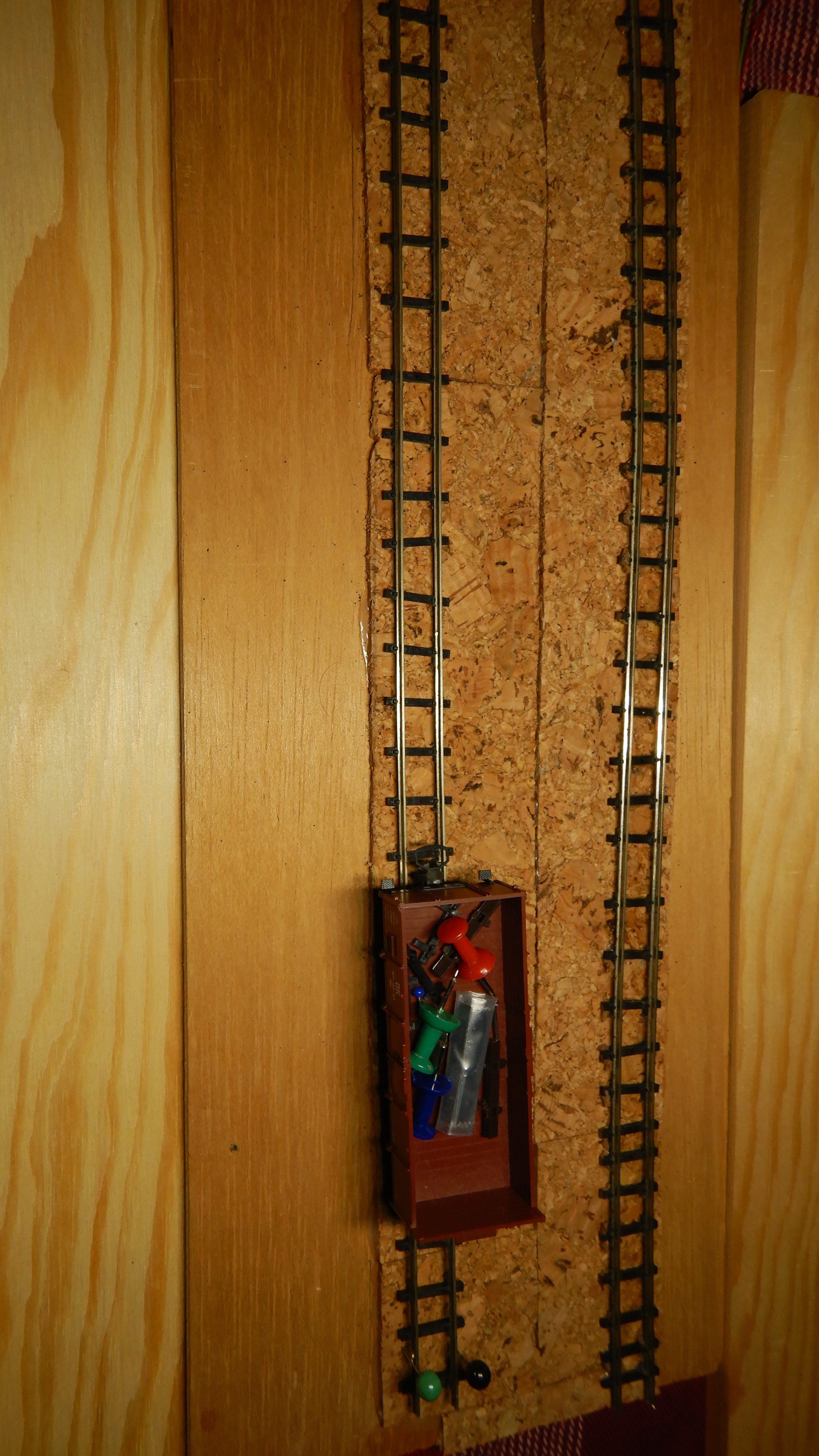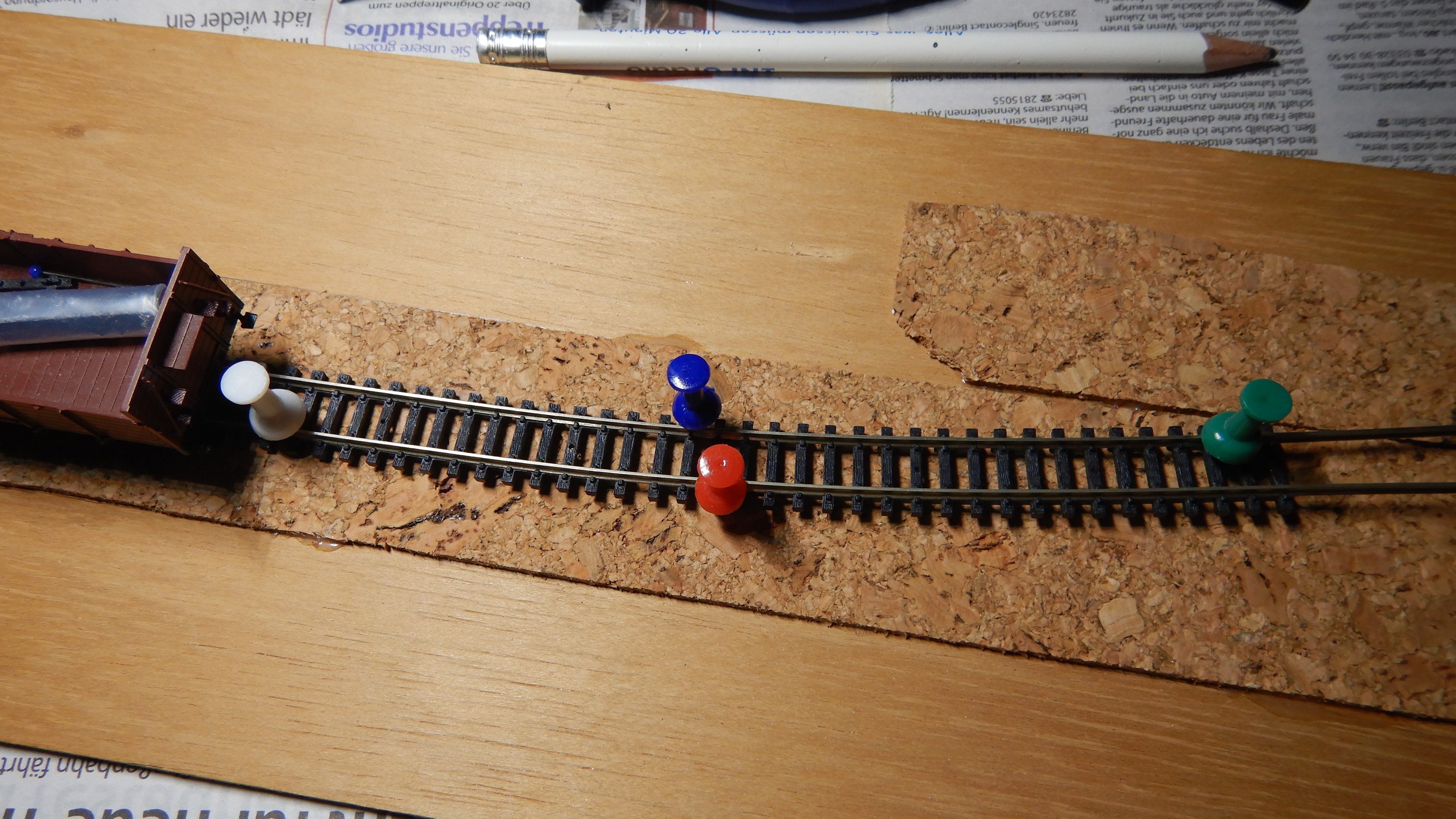 In dem Zuge (ha!) werden beide Gleise am Segmentende noch einfache Prellböcke aus Holz erhalten, um ein Herunterfallen der Modelle zu erschweren.