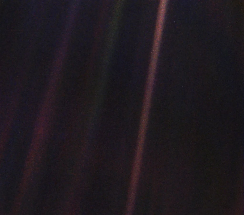 Dieser kleine blaue Punkt. Dort befinden sich 12.512 (Zwölftausendfünfhundertundzwölf) Atomwaffen, dafür aber leider nur 1.864 Pandabären, Nudelauflauf, Keith Richards, meine Kaffeemaschine (systemrelevant!), der Porsche von Christian Lindner (im Halteverbot, naja), 11.615 Boeing 737 aller Unterkategorien, die Modellbahn, mein Balkon. Und von so weit weg ist es auch alles sehr egal, sogar Christian Lindner, auch wenn er es selber vielleicht nicht glauben mag.